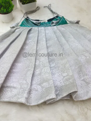 LM6283 – Stunning Green and Silver Brocade Frock (Festive Edition)
