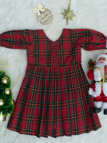 LM6296 – Adorable Red Tartan Yoke Frock (Perfect Christmas Gift)